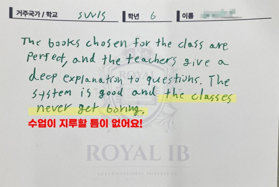 첫 시험부터 꾸준히 7을 유지, 실제 IB 성적도 7점을
