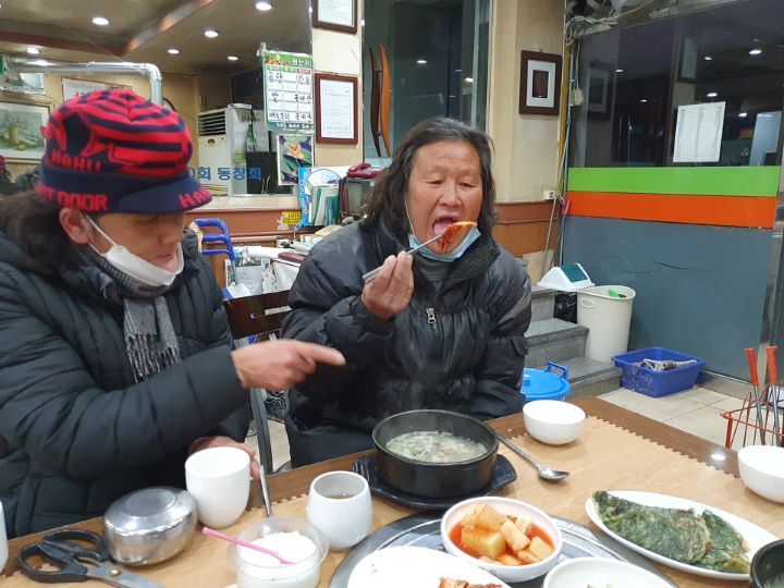 끼니 거른 3분과 뜨끈한 소머리곰탕으로 저녁을 대접하고 출발 합니다.