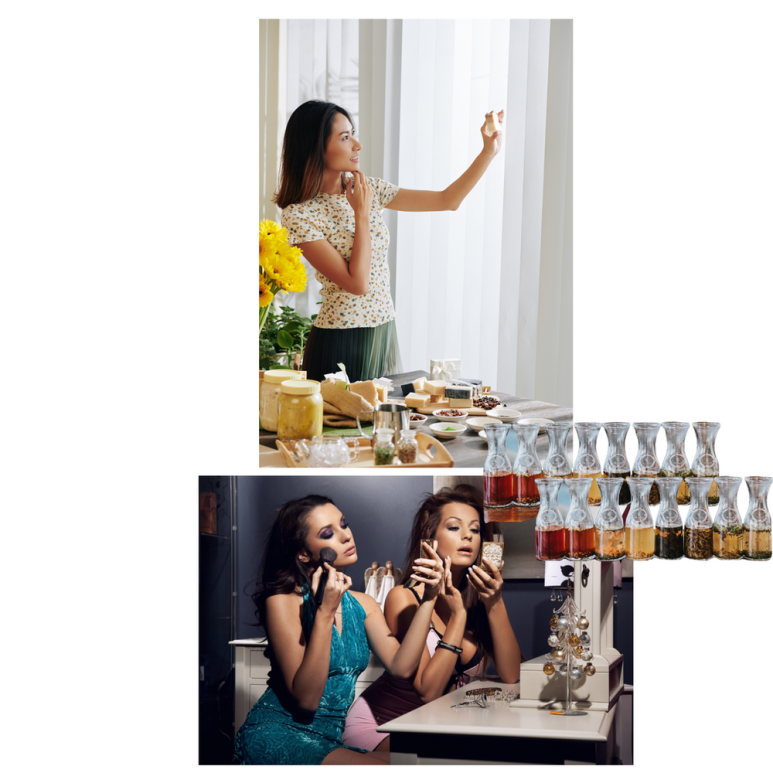 을 혼합하거나, 화장품의 내용물을 작은 단위로 소분하는 화장품을 일컫는 말입니다.