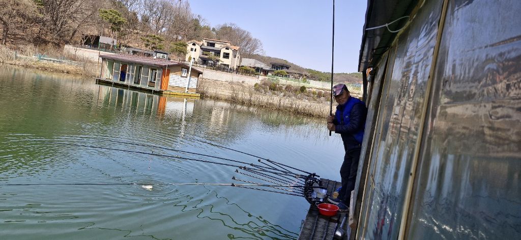 대편성 완료하고 사우나 한 후 점심먹고 들어와 오후 낚시 시작합니다.