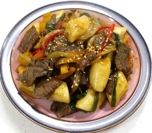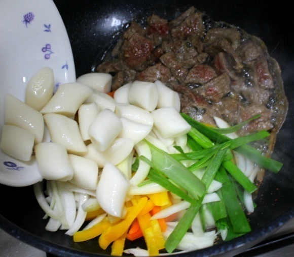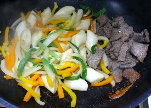 야채는 피망과 양파만 들어갔고요. 소고기에 떡까지 어우러지니 부모님 생신상이나 남편 생일상 또는 집들이 음식으로도 좋겠단 생각이 들어요.
