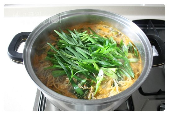 그리고 준비한 부추와 대파 초록부분을 넣고 살짝이 끓인 후