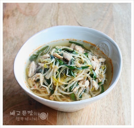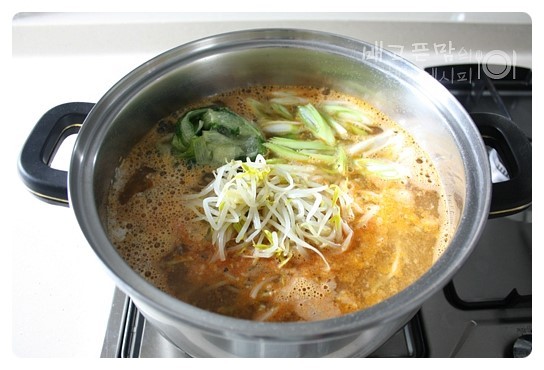 그리고 여기에 준비한 숙주, 단배추, 대파 흰부분을 넣고 끓여 줍니다.