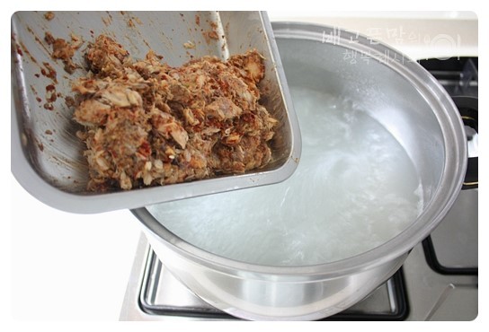 냄비에 쌀뜨물 12컵을 붓고 끓여 준 후