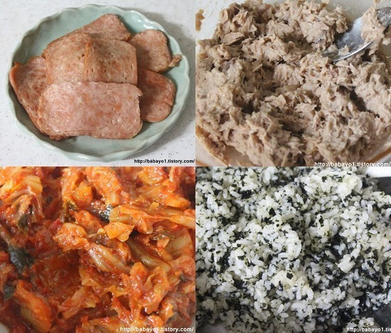 ▶ 스팸, 참치, 마요네즈, 김치, 설탕2/1티, 조미김, 참기름, 맛소금