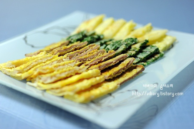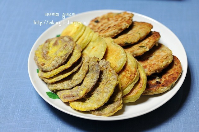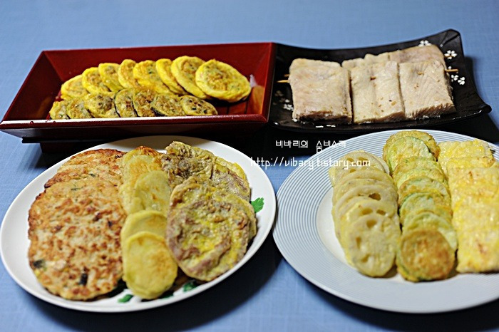 * 빈대떡 부치는 요령** 1, 녹두는 집에서 손질하기 복잡하니 시판용을 이용하는 것도 하나의 방법이다. 2, 미리 찬물에 담가 거피를 하고 멥쌀을 섞고, 물을 적당히 섞어 간다. 3, 돼지고기는 다진마늘,소금, 후춧가루로 밑간하고 4,배추김치는 송송 썰고 물기를 꼭 짠다. 5,숙주와 고사리는 삶아 3cm 길이로 썰고 모든 재료를 함께 섞는다. 6,프라이팬에 기름을 넉넉히 두르고 한 국자씩 떠 넣어 동그랗게 지져낸다. 7, 풋고추, 홍고추를 썰어 고명으로 얹어낸다. ** 호박전 부치는 요령** 1,호박은 적당한 두께로 썰어서 미리 살짝 소금을 뿌려두었다가 마른 면 행주로 물기를 완전히 제거한다 2,일회용 팩에 호박과 밀가루를 넣고 흔들어서 밀가루를 묻혀주세요. 편리하고 밀가루 낭비가 적고 고루 묻힐 수 있다 3,묻은 밀가루는 여분이 없도록 탁탁 털어 내어 달걀물이나 반죽을 입혀야 고루 잘 묻힌다 4, 미리 달군 팬에 앞뒤로 노릇노릇 지져 내는데..이때 주의사항은 한면이 완전히 익은 다음 뒤집기를 한다 그래야 보기도 좋고 기름도 덜 먹어 전이 깔끔하다 5, 부쳐진 호박전은 찬 공기에 펼쳐 급냉시켜야 색깔이 변하지 않고 곱다. * 연근전, 고구마전 부치는 요령** 1,고구마는 일정한 두께로 썰어서 연한 소금물에 담갔다가 꺼내어 밀가루를 묻히고 부친다. 그래야 부서지지 않고 간도 적당히 베어 맛있다. 2, 연근은 약간의 소금과 식촛물에 담궈 아린맛을 제거하고 난 뒤 밀가루를 묻히되 여분은 탁탁 털며 모두 털어내고 나서 반죽을 묻혀 지져낸다. 한번 살짝 데쳐내어 전을 부쳐도 좋은 방법일 것이다. * 팬 달구기& 깔끔하게 부쳐내는 요령** 1, 푸라이팬을 바싹 달구어 기름을 넉넉히 부어서 팬 정리를 하고 나서 전을 부친다. 2,기름을 말끔하게 닦아내고 새 기름을 부어 다시 팬을 달궈서 재료를 넣고 부친다. 3, 이때는 기름을 적게 넣고 부쳐야 달걀물이 부풀어 오르지 않고 모양이 매끈하다. **표고버섯전 부치는 요령** 1, 표고버섯 불리기 찬물에 2시간 정도 담가 불린 뒤 꼭지를 떼고 물기를 눌러 짠다. 표고버섯은 찬물에 오래 불려서 사용해야 향이 그대로 남아 있어 맛있다. 그러니 미지근한 물이나 뜨거운 물은 가급적 피한다. 2, 표고버섯 간하기 표고버섯에 소금, 참기름,마늘즙을 넣고 주물러 간이 고루 베도록 한뒤 둥근 커터로 가장자리의 오목한 부분을 찍어내 평평하게 만들어서 부친다. 작은 표고버섯은 칼등으로 두드려 평평하게 편다. 3, 전 지지기 간이 배면 표고버섯의 배쪽에 밀가루를 가볍게 묻혀서 털어내고, 밀가루 묻힌 쪽에만 달걀물을 묻혀서 팬에 식용유를 두르고 타지 않도록 지진뒤 뒤집어서 버섯의 갓 부분을 지진다. ** 생선전 부치는 요령** 1, 동태전 등 생선전은 연한 소금물에 1시간 정도 담구었다가 물기를 제거하고 부쳐야 부서지지 않고 모양이 예쁘다. 2 생선살 밑간하기: 소금, 화이트후춧가루로 먼저 버무리고 나서 생선살에 고루 뿌려준다. 3, 전 지지기: 생선살에 간이 충분히 배면 마른 밀가루를 가볍게 묻히고 여분의 가루는 털어낸다. 달걀물에 담갔다가 건져내어 팬에 식용유를 두르고 약한 불로 노릇하게 지진다. 한쪽을 완전히 익히고 나서 뒤집기를 한다. **배추전& 부추전 부치는 요령** 1, 배추의 줄기 부분은 방망이로 자근자근 두드려 부드럽게 해준다. 2, 부추전 부칠때는 가급적 두께를 얇게 부쳐야 맛있다. 3, 반죽은 부추가 서로 달라붙을 정도로 조금만 사용하도록 한다. 4, 부친 전은 서로 겹치치 않도록 펼쳐놓아 찬공기에서 급냉시켜 두면 색깔도 곱고 맛있다. * 동그랑땡& 육전 부치는 요령** 6, 부칠때는 숟가락으로 가장자리를 매끈하게 톡톡 안쪽으로 집어넣으면서 동그란 모양을 만들면 쉽다 아니면 손으로 동그랑땡을 잡아서 후라이팬 바닥에 둥글리기를 하면서 부쳐도 된다 |