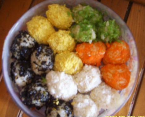 오물조물, 손으로 뭉쳐 만든 맛있는 '오색 주먹밥' 방부제 하나 들어가지 않고,
