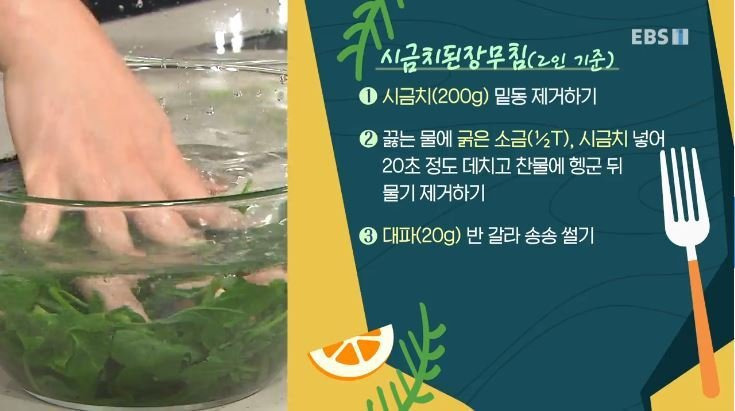 | 지금이 제철이에요, '시금치된장무침' 이맘때 시금치는 맛이 잘 들어서 씹을수록 달큼해요. 그냥 데치고 무치면 끝! 초간단 레시피의 끝판왕 시금치된장무침을 소개합니다! <2인 기준> - 주재료 시금치(200g), 굵은 소금(½T), 대파(20g) - 양념 재료 다진 마늘(⅓T), 참치액젓(⅓T), 고춧가루(⅓T), 된장(⅓T), 참기름(1T), 참깨(½T) --------------------------------------------------------------------------- 1. 시금치(200g) 밑동 제거하기 ✔ 포항초 시금치는 일반 시금치에 비해 비타민c가 3배나 많아요. 2. 끓는 물에 굵은 소금(½T), 시금치 넣어 20초 정도 데치고 찬물에 헹군 뒤 물기 제거하기 3. 대파(20g) 반 갈라 송송 썰기 4. 다진 마늘(⅓T), 참치액젓(⅓T), 고춧가루(⅓T), 된장(⅓T), 참기름(1T), 참깨(½T) 섞어 양념 만들기 ✔ 나물에 양념을 버무릴 때 손에 힘을 빼고 살살 버무려야 골고루 양념이 배요. 5. 양념에 시금치, 대파 넣어 버무리기 6. 그릇에 시금치된장무침 담기 -------------------------------------------------------------------------- 천상현 셰프님의 레시피입니다. 🍳 요리 영상 보기(무료): https://bit.ly/424w6S3 🦞최고의 요리비결 월~금 오전 10시 50분, EBS1 토 오전 11시 55분, EBS1(종합방송) #EBS #최고의요리비결 #최요비 #요리 #레시피 #꿀팁 #노하우 #반찬 #천상현 #광희 #김동완 #시금치 #된장국 #시금치된장무침 #토마토시금치볶음 #나물무침 |