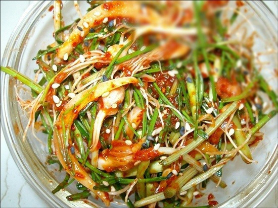 | 봄나물 달래무침 맛있게 만드는법 예년 같지 않게 햇살이 따뜻해졌어요 마트에는 벌써 봄나물들이 주부들의 발목을 잡고 있죠? 향긋한 달래도 빠지지 않으려고 버선발과 초록 치마를 입고 새색씨마냥 자판대에 앉았네요 달래무침, 만드는 법도 쉽고 아삭아삭, 향긋하니 오늘은 산뜻하게 달래무침 만들어 볼까요 ----------------------------------------------------------------------------------- ★ (달래요리) 봄나물 달래무침 만드는법 ★ 재료 : 달래한줌, 양파(중)1/2개, 미나리한줌반 달래무침 양념 : 고춧가루2T, 식초1T, 레몬즙0.7T, 설탕1.5T, 양조간장0.7T 다진마늘1T, 통깨1T, 참기름0.5T ----------------------------------------------------------------------------------- 일단, 달래무침은 양념을 먼저 만들어서 양념을 살짝 숙성시킨후 버무려주는게 맛있는 달래무침 만드는법 입니다. 위에 제시된 달래무침 양념을 넣어 양념장을 만들어주시구요. 취향에따라 식초나 설탕을 가감 하시면 됩니다. 달래무침 양념을 만들 때 레몬즙을 넣어주고면 산뜻하면서 깊은 맛이 더해져 맛있어요! 달래는 흐르는 물에 깨끗히 씻은후 먹기좋은 크기로 잘라주고 머리부분은 칼등을 이용해 살짝 눌러주세요! 미나리도 먹기좋은 크기로 잘라주고 양파도 채썰어 준비합니다. 양파채는 물에 5분~10분정도 담궈 매운맛을 제거해주세요! 설탕물에 담궈 주시면 더 좋아요~ 양념장에 달래랑 미나리 물기쪽뺀 양파를 넣고서 조물조물 버무려주세요! 짜잔! 맛있게 완성된 봄나물 달래무침 이에요. 양념장 만들어 간단하게 재료 넣어 버무리기만 하면되니깐 달래무침 만드는 법도 아주 쉬운것 같아요 ㅎ 달래만 넣으면 음식의 맛과 향이 달라지기 때문에 요즘 달래요리를 많이 해먹게되는데 오이 넣고 달래무침 만들어도 산뜻하니 아주 맛있어요! 매콤새콤달콤 산뜻하니 입안이 봄이오네요! 미나리를 넣어서 더 향긋한 듯해요 ㅎ 달래무침은 한번에 너무 많이 만드시지 마시고 하루 안에 다 먹을수 잇을 만큼만 만들어 드시는게 더 좋은것 같아요! 입맛 없을때 김치 대신에 달래무침으로 밥 한 그릇 뚝딱해도 아주 좋아요 ㅎ 향긋한 봄을 제공하는 달래요리 많이 많이 만들어 드세요~ |
