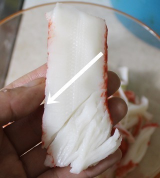 2) 크래미는 사선으로 모두 찢어줍니다.