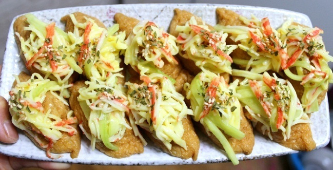 오늘 저녁으로 먹은 크래미 유부초밥인데요.