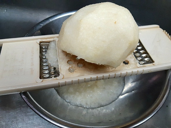 무 절인 것을 헹구지 않고 그대로 국물에 넣을 것입니다.