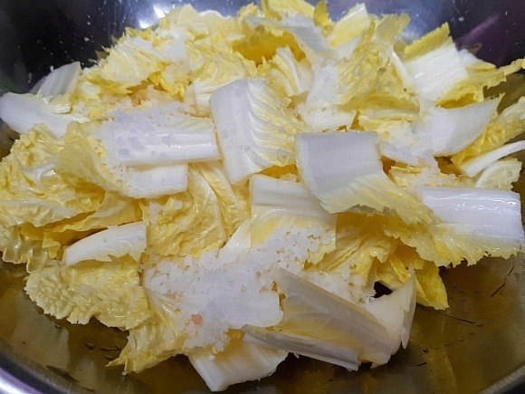 배추는 한 번만 헹구어 넣고