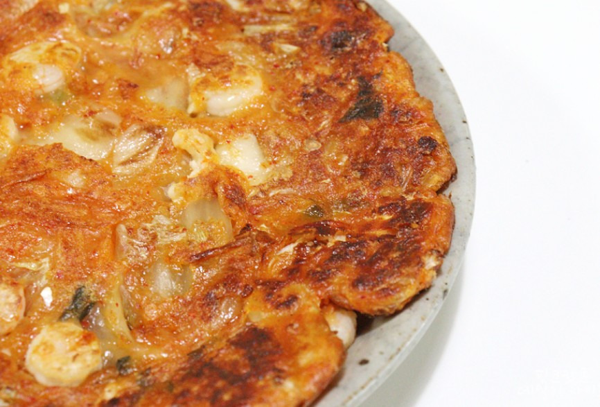 오늘같이 흐리고 촉촉한 날, 따뜻한 프라이팬 위에 김치전 하나 올려놓고 지글지글 소리 들으며 구워보세요.