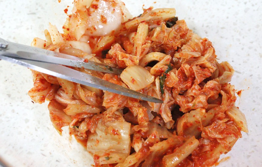 김치를 잘게 잘라서 넣어주세요.