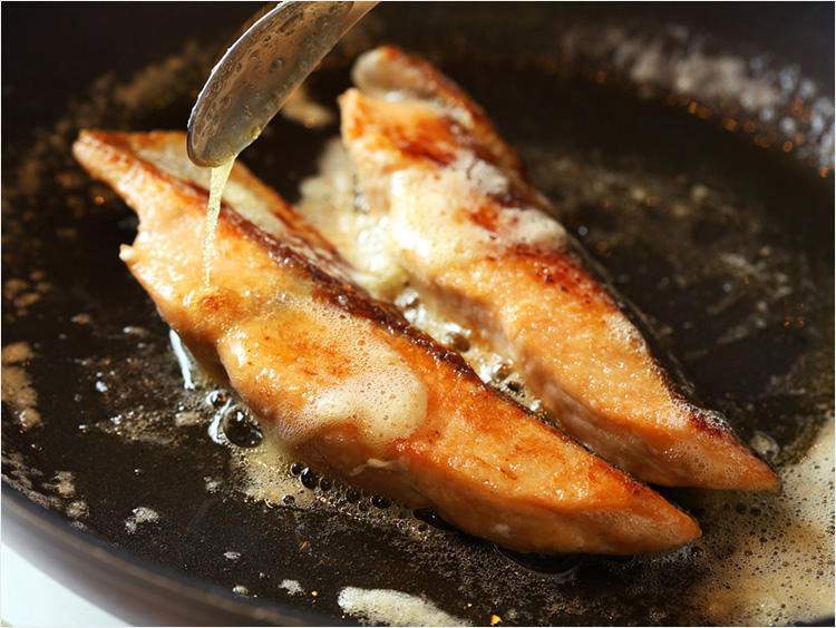 중약불에서 천천히 익혀야 속까지 촉촉하게 구울 수 있습니다.