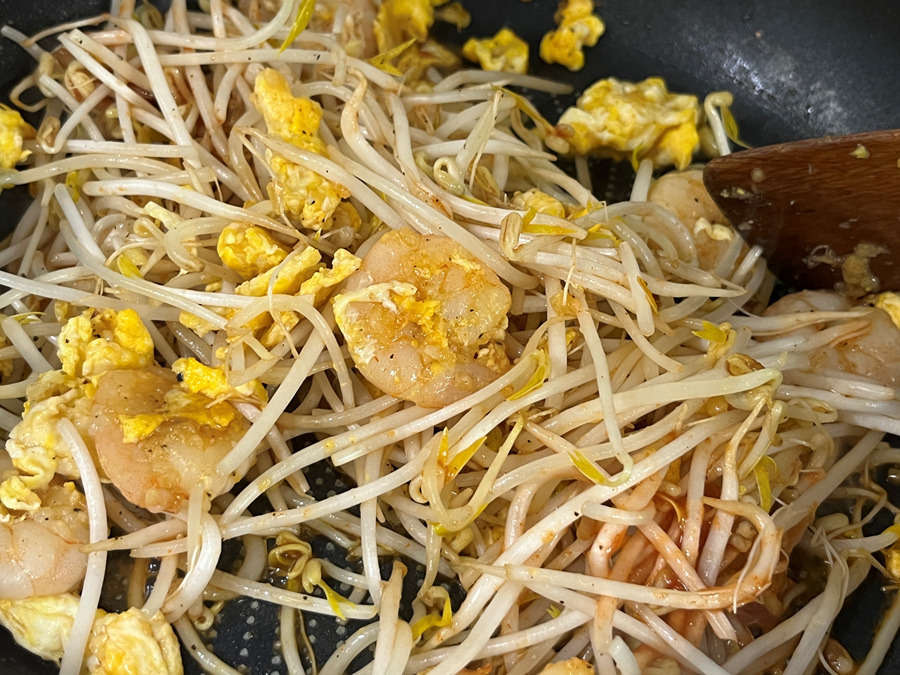 숙주 그냥 볶지 마시고 '이것'과 함께 볶아서 근사한 요리로 만들어 보세요! 재료 새우 7~8마리 계란 1개 숙주 150g 다진 마늘 1스푼 후추 간장 1.5스푼 스리라차 0.5스푼(고추장 대체 가능) 올리고당 0.5스푼 참기름 1스푼 마늘은 기름에 볶으면 금방 타기 때문에 반드시 불을 가장 낮게 해 주세요. 새우가 붉은색으로 변할 때까지 충분히 볶아 주세요. 계란은 오래 볶으면 식감이 단단해지기 때문에 새우가 다 익어갈 때쯤 넣고 익히세요. 그리고 후추와 간장 1.5스푼 넣어 주세요. 스리라차 소스가 없다면 고추장을 1/3스푼 정도 넣으세요. 그래야 숙주볶음에 물이 생기지 않아요. 짭짤하게 양념되어 밥반찬은 물론, 간단한 한 끼로도 충분한 메뉴입니다. < 모셔온 자료 입니다 > |
