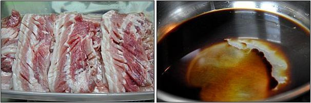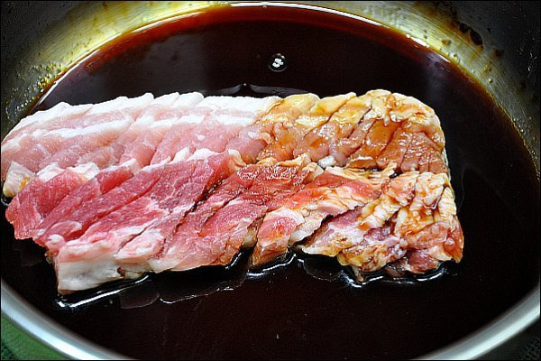 칼집을 내어준 삼겹살은 맥주 1컵에 담구어 냉장고에 넣어둡니다.