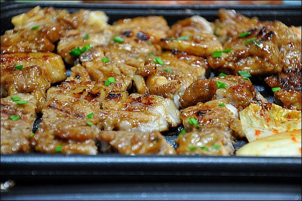 ㅎㅎ 앞뒤로 소스를 바른뒤에 불판에 올려줍니다.