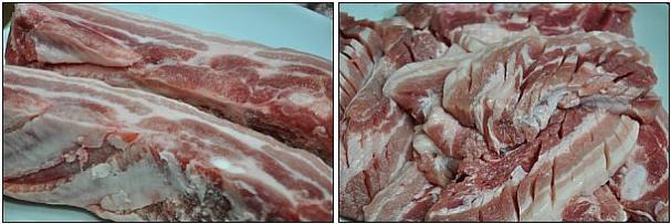 삼겹살의 칼집 사이사이로 들어간 맥주가 고기의 잡내를 없애주고, 삼겹살으 부드럽게 만들어 줍니다.