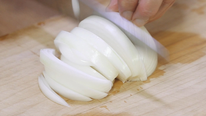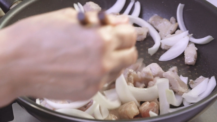 살짝 겉면이 익었을 때 양파를 넣고 1분 정도 함께 볶아 주시면 된답니다.
