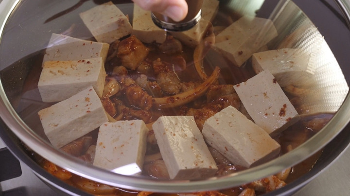 강불에서 끓어오르면 중불로 바꿔 뚜껑을 닫고 고기가 익을 때까지 익히세요.