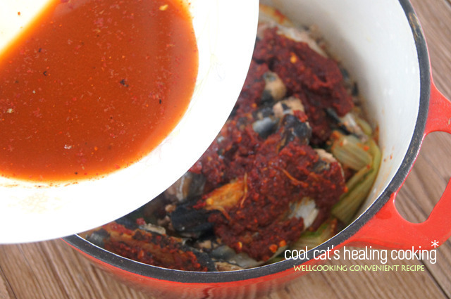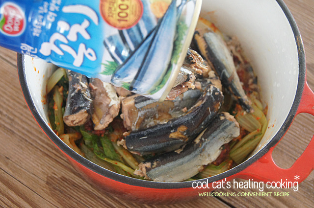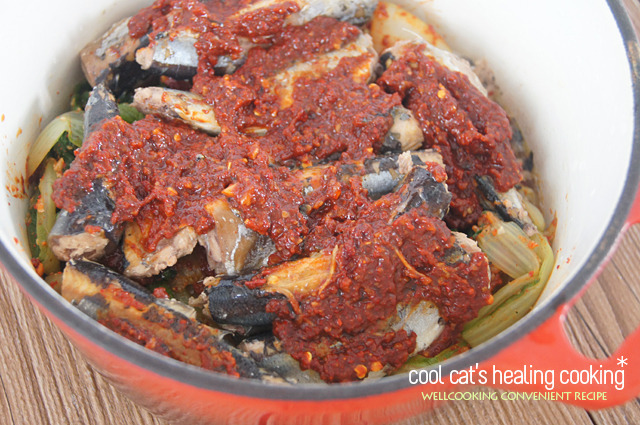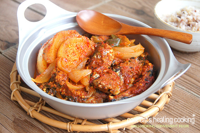 며칠전 동네 마트에 단배추가 너무 싸길래 겉절이나 만들어볼까하고 얼른 두단을 업어 왔는데 시간이 여의치 않아 차일 피일 미루다보니 시들 새들~상태가 그닥 좋아 보이지 않다라구욤..ㅜ 그대로 뒀다간 아무래도 못 먹게 될까봐 소금을 약간 넣고 얼른 데쳐 두었답니다.. 양이 제법 많아 보이지요..^^ 먹을만큼씩 작게 소분해서 냉동 보관 해두면 필요할때마다 꺼내 쓸수 있어 참 편리하답니당.. 오늘은 요 시래기에 통조림 꽁치를 넣어서 매콤하니 자작 자작하게 조려볼 거예요..^^ 국물이 좀 넉넉하면 찌개~~ 국물이 좀 적으면 조림~~ㅎ 국물은 원하는 스타일로 적절히 조절하시면 되겠지욤..^^* >> 재 료 << 꽁치 통조림 1캔, 단배추 시래기 (반단 분량..) 무 1토막, 양파 1/2개, 대파 1대.. 멸치 다시마 육수 1/2컵.. 고춧가루 4큰술, 크러쉬드 레드 페퍼 1큰술, 다진 마늘 1큰술, 생강 약간, 된장 1큰술, 간장 1큰술, 맛술 2큰술, 들기름 약간, 표고 가루 1/2큰술, 후춧가루 약간, 멸치 다시마 육수 1/2컵.. 맛있는 조림을 위해선 미리 요렇게 양념을 만들어 잠시 숙성시켜 주세요.. 고춧가루 외에 크러쉬드 레드 페퍼를 약간 섞어주었습니당.. 요게 들어가면 엄청 깔끔하고 칼칼한 매운맛이 나거든요..^^ 없으면 걍 고춧가루만 넣어 주셔도 되구요.. 청량고추를 넣어 주셔도 좋습니당., 미리 데쳐둔 시래기에 양념의 일부를 덜어 조물 조물 무쳐내 잠시 두어 간이 배게합니다.. 생선 조림에 들어간 간이 쏙~ 밴 무는 정말 일품이지요..^^ 간이 잘 배게 맛있게 조리시려면 무를 그대로 넣어 조리는 것이 아니라 미리 살짝 삶아낸 다음 양념을 넣어 조리시면 됩니다.. 그럼 양념의 훨씬 깊게 잘 배고 맛있습니당.. 바닥이 두꺼운 냄비에 양념해서 무쳐둔 시래기를 넣고 미리 삶아낸 무에 양념을 켜켜이 고루 묻혀 깔아줍니다.. 꽁치 통조림은 국물을 완전히 따라내고 체에 받쳐 뜨거운 물로 한번 샤워를 시켜 사용해 주세요.. 꽁치를 쫙~~펼쳐 깔아 주시공.. 남은 양념을 고루 고루 발라줍니다.. 멸치 다시마 육수 반컵을 양념그릇에 부어 그릇에 남은 양념을 헹군 다음 가장자리로 가만히 부어줍니다.. 국물이 많은것이 좋으시면 조금 더 넣어 주셔도 되구요..^^ 센불로 가열해서 한번 끓어 오르면 불을 낮추고 약한 불로 뭉근히 끓여 간이 쏙 배게 해주세요.. 재료가 충분히 익고 간이 배었다 싶으면 채썬 양파와 어슷 썰어둔 대파를 넣어주세요.. 뚜껑을 덮어 한소끔 끓인 다음.. 불을 끄고 남은 여열로 충분히 익게 해주시면.. 요렇게 완성~~!! ㅎ |