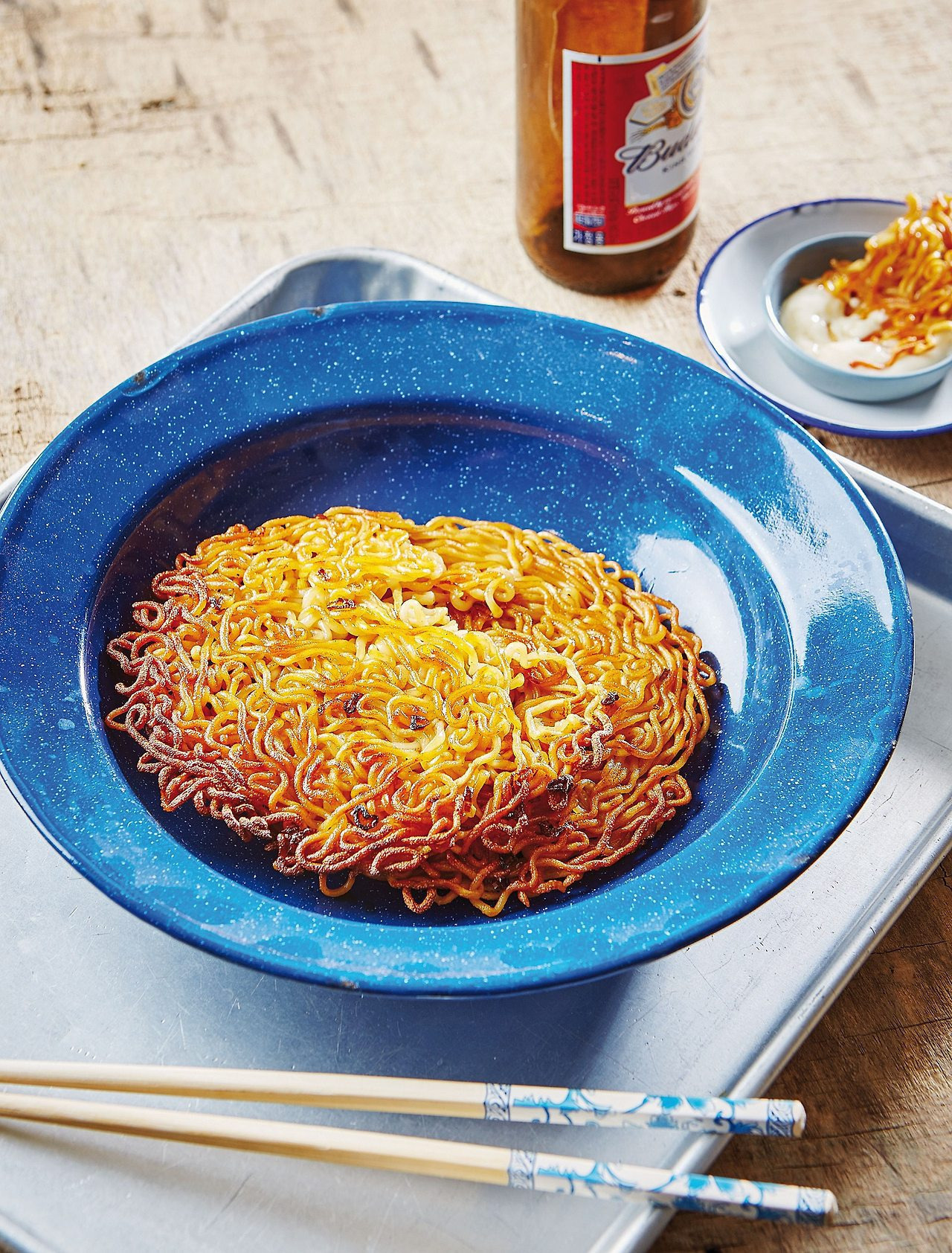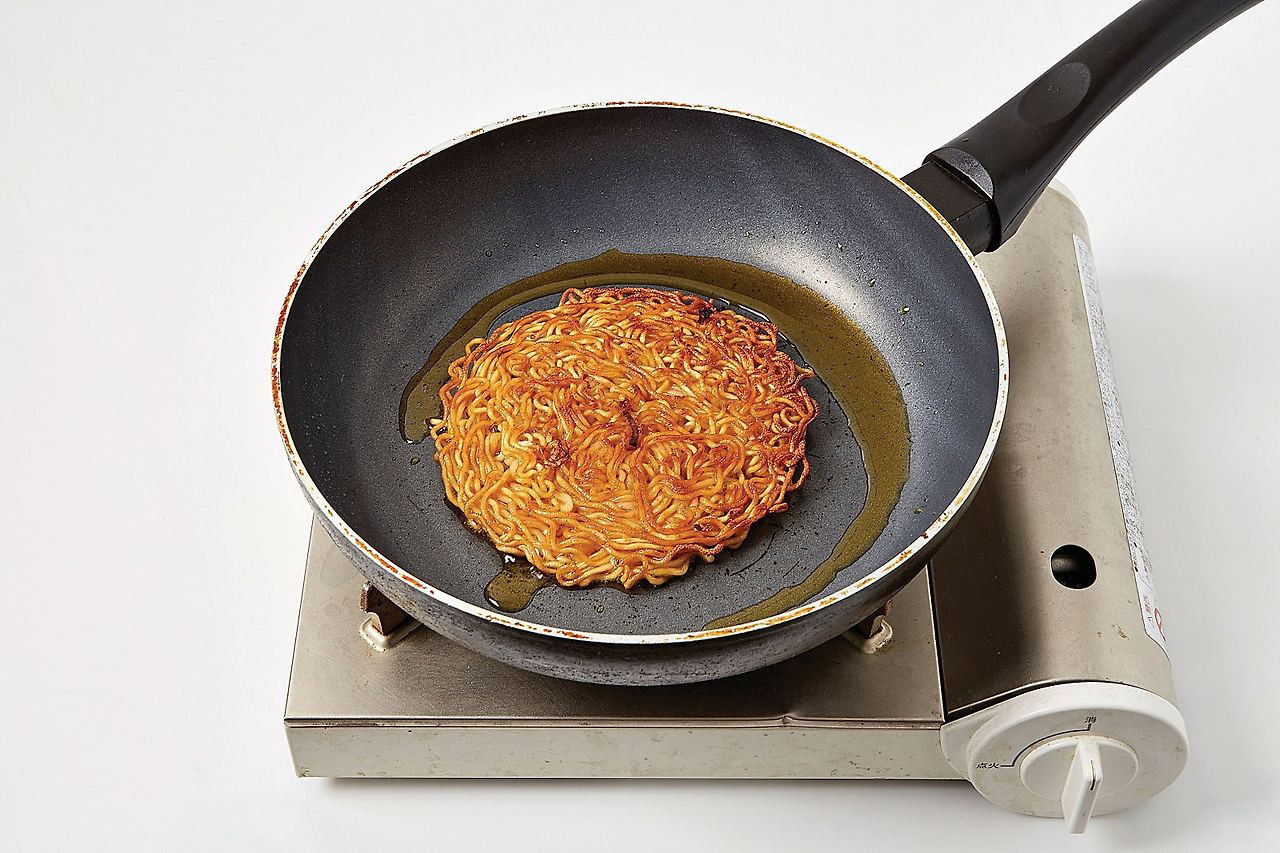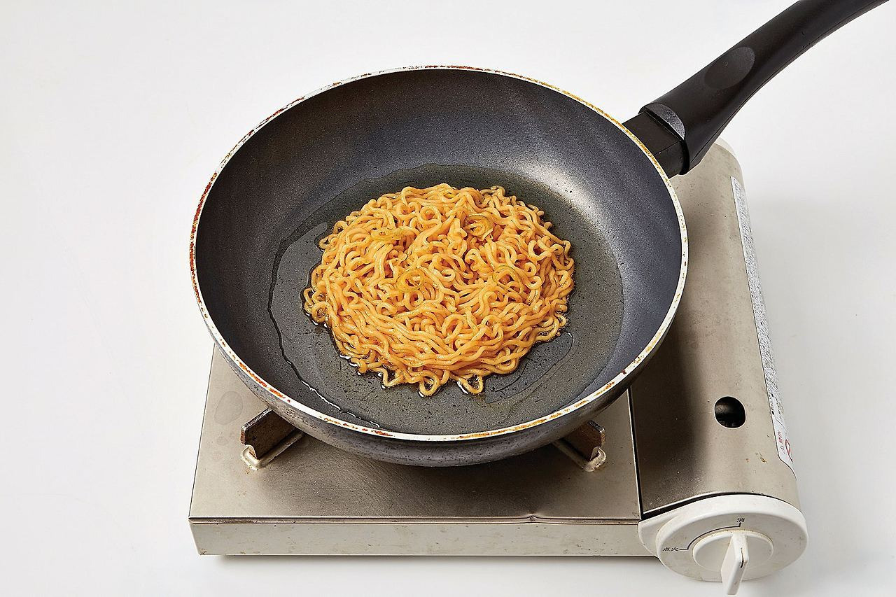 Tip. 라면의 물기를 충분히 빼야 구울 때 기름이 튀지 않아요.