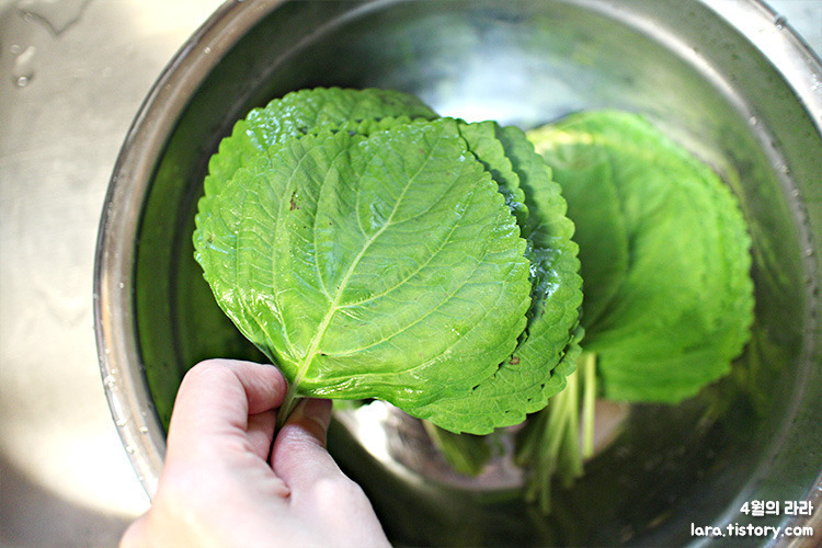 3. 소금물에 절인 깻잎 씻어서 물기 뺀다.