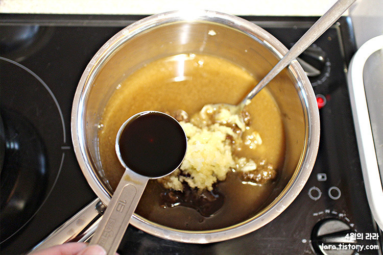 육수 130ml, 된장 160g, 맛간장 60ml, 조청 60g, 청주 35ml, 다진마늘 35g, 소금 1T