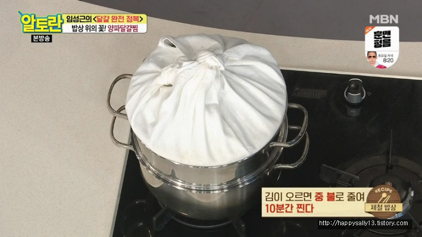 센불에서 찌다가 김이 오르면 중불로 줄여 10분간