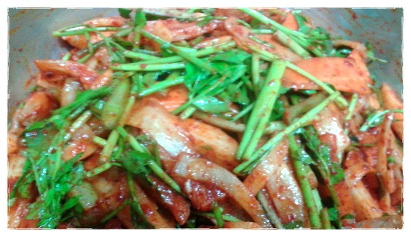가오리 1키로 미나리 300그람 무 0.5개 고추가루 고추장 천일염