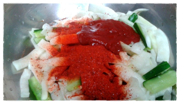 모자란듯한 양념 설탕 식초 고추가루 소금은 여기서 더 넣어줍니다