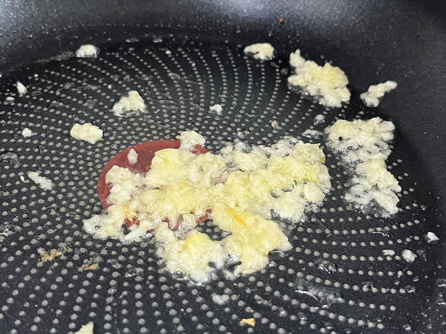 마늘은 기름에 볶으면 금방 타기 때문에 반드시 불을 가장 낮게 해 주세요.