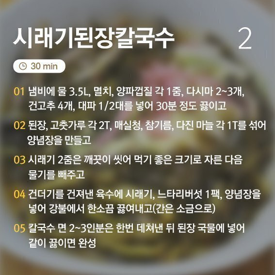 시래기 된장칼국수 작성자행복남|작성시간04:20|조회수111 목록 댓글 1 글자크기 작게가 글자크기 크게가 < 모셔온 자료 입니다 > 다음검색 현재 게시글 추가 기능 열기 북마크 공유하기 신고 센터로 신고 댓글 댓글 1 댓글쓰기 답글쓰기 댓글 리스트 작성자해바라3 | 작성시간 05:23 new 감사드려요~ 댓글 전체보기