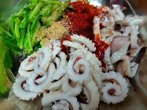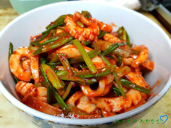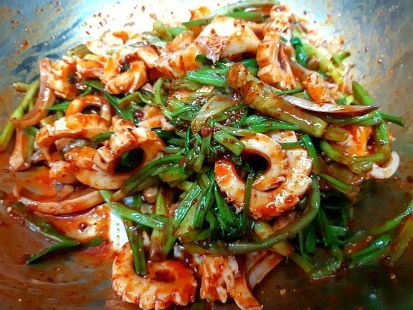 | 미나리 오징어 초무침 요리 레시피 이맘때면 생각나는 새콤달콤한 초무침생각만해도 군침이 돌죠? 물에만 담궈져 키우는 미나리는 거머리가 있어생으로 먹기가 깨름직햇었죠?지금 나오는 미나리는 물을 대어 줬다 뺐다하는 방식으로 재배를 하기 때문에 거머리가 없어 안심하고 드셔도 됩니다. 햇미나리가 나올쯤에 꼭 한번은 먹을 오징어와 초무침 봄이 올무렵 새콤달콤하게 입맛까지 돋우어주는 무침입니다. 미나리는 잎은 따로 나물이나 부침개로 먹고줄기부분만 살짝만 데쳐요. 오래 데치면 질겨져요.오징어도 손질하여 칼집넣어 데쳐서 썰어 줍니다. 초고추장에 고추가루 매실청 깨소금을 더해서조물조물 무침하면 되겠습니다. |