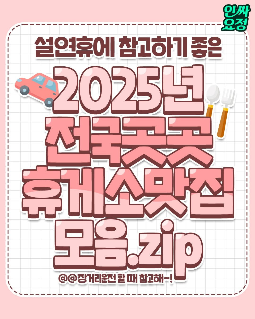 2025년 전국곳곳 휴게소 맛집모음 작성자해바라3|작성시간25.02.01|조회수83 목록 댓글 1 글자크기 작게가 글자크기 크게가 다음검색 현재 게시글 추가 기능 열기 북마크 공유하기 신고 센터로 신고 댓글 댓글 1 댓글쓰기 답글쓰기 댓글 리스트 작성자감바우 | 작성시간 25.02.01 감사합니다. 댓글 전체보기