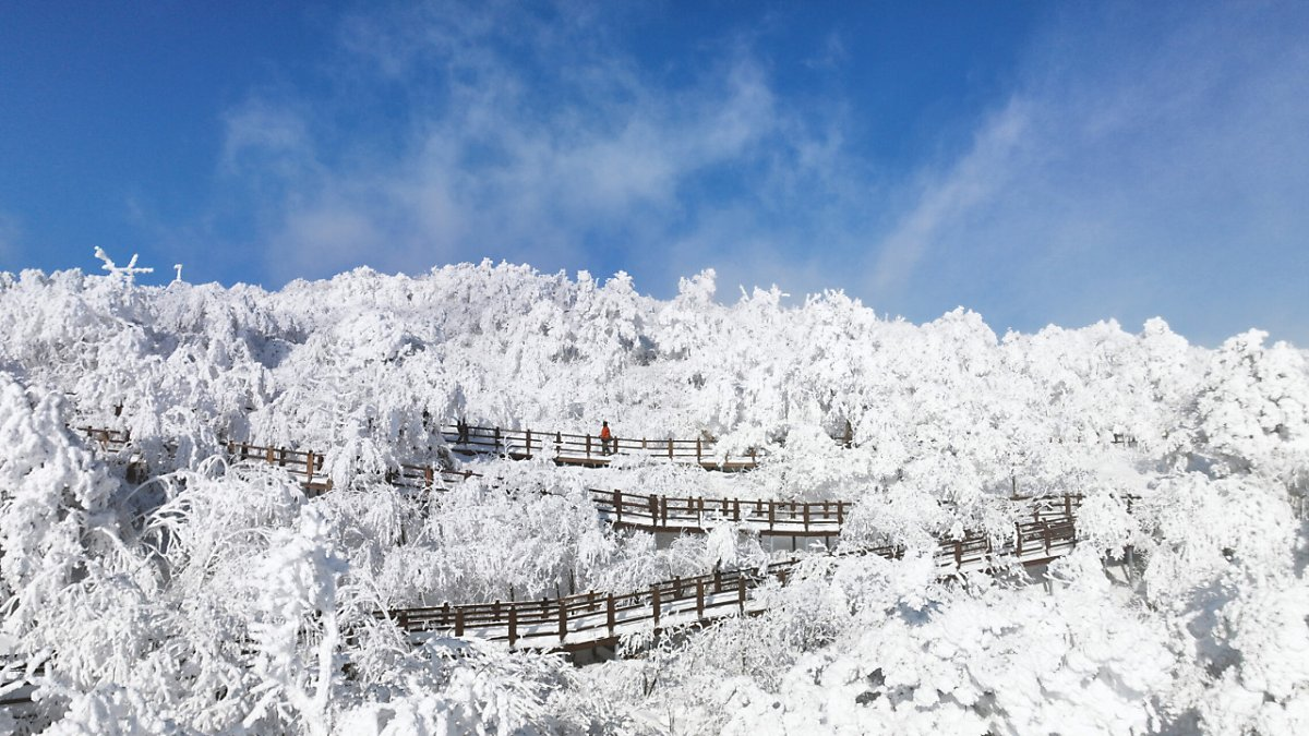 덕유산의 눈 덮인 풍경은 겨울을 대표하는 아름다움입니다.관광 곤돌라를 타고 해발 1,520m의 설천봉에 오르면 한눈에 펼쳐지는 설경이 감탄을 자아냅니다.설천봉에서 덕유산 정상인 향적봉까지는 약 20분 거리로, 부담 없이 겨울 하이킹을 즐길 수 있습니다.