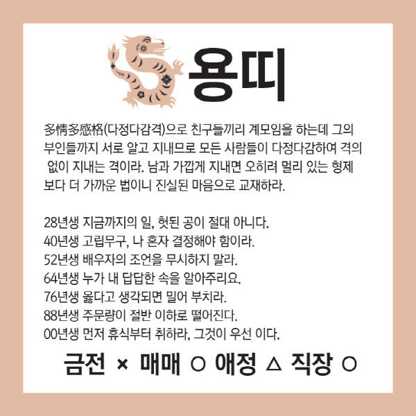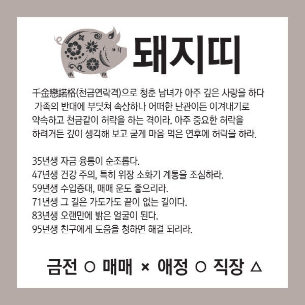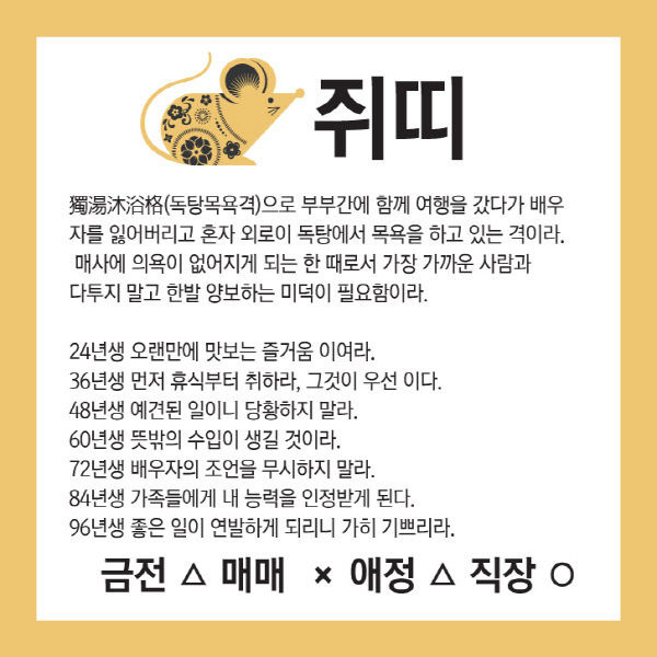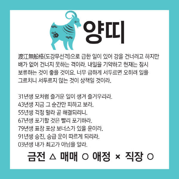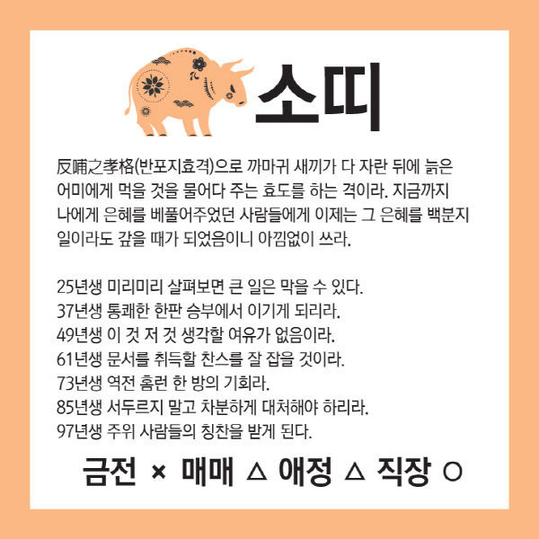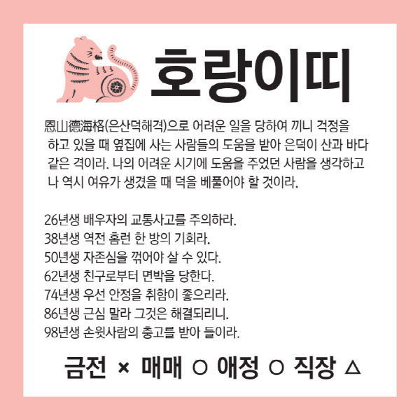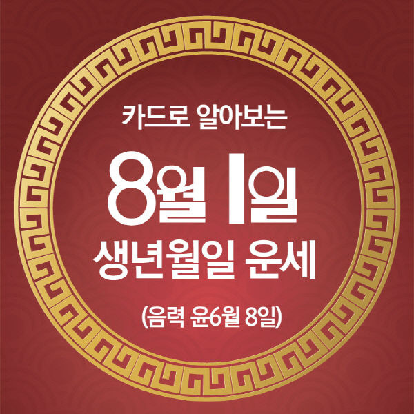 오늘의 운세 --- 2025년 8월 1일(음력 윤6월 8일) 壬寅 금요일 작성자옆지기|작성시간25.07.31|조회수90 목록 댓글 6 글자크기 작게가 글자크기 크게가 [카드뉴스로 읽는 오늘의 운세] 8월 1일 (금요일) 춘강 구박사가 알려주는 생년월일 금전운은?생년월일 오늘의 운세 --- 2025년 8월 1일(음력 윤6월 8일) 壬寅 금요일 다음검색 현재 게시글 추가 기능 열기 북마크 공유하기 신고 센터로 신고 댓글 댓글 6 댓글쓰기 답글쓰기 댓글 리스트 답댓글 작성자옆지기 작성자 본인 여부 작성자 | 작성시간 25.08.01 늘,,,,감사 합니다 작성자해바라3 | 작성시간 25.07.31 감사드려요 답댓글 작성자옆지기 작성자 본인 여부 작성자 | 작성시간 25.08.01 늘,,,,감사 합니다 작성자방 긋 | 작성시간 25.08.01 감사합니다 답댓글 작성자옆지기 작성자 본인 여부 작성자 | 작성시간 25.08.01 늘,,,,감사 합니다 댓글 전체보기
