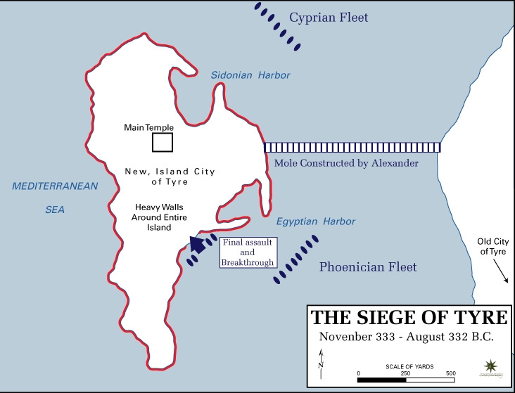알렉산더는 지중해 해안가에서 섬도시인 두로까지