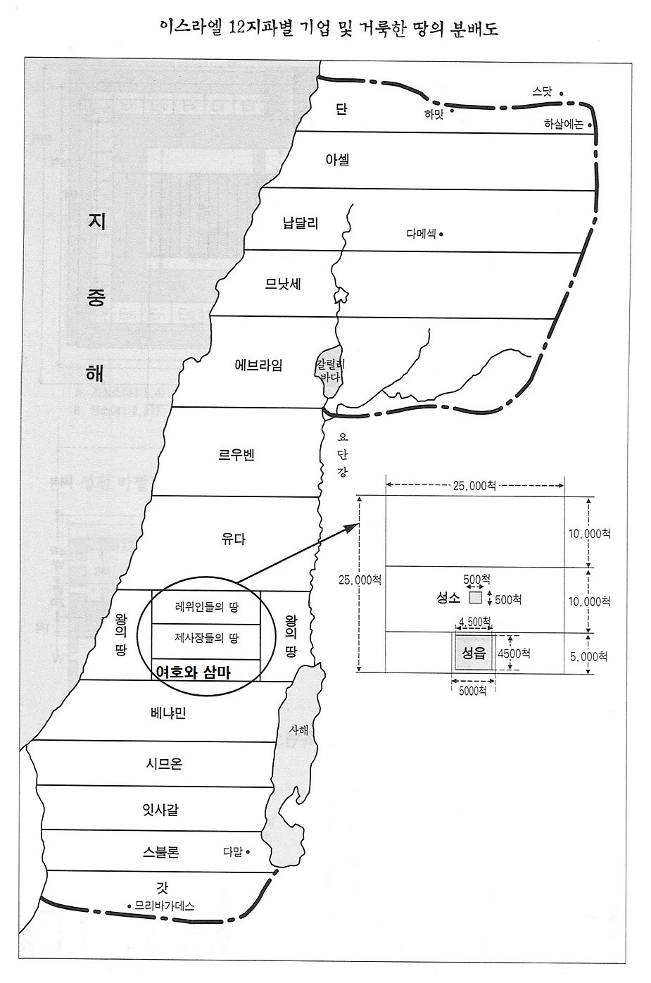 레위 지파의 땅은 거룩한 땅과 인접한 곳에 주고,