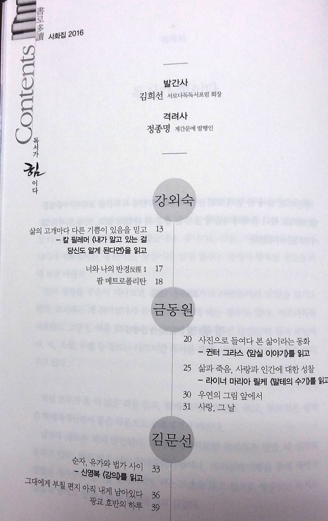 書로多讀 사화집에는 독서감상문 외에 참여자의 작품도 함께 실려 있다.