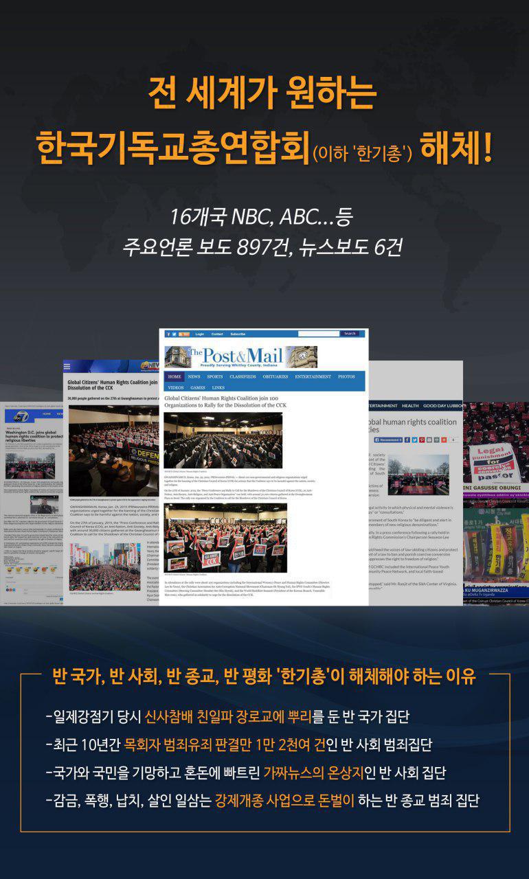 지난 10월 한기총, 한기연, 한교총 등 신사참배 80년 회개 및 3.1운동 100주년을 위한 한국교회 일천만 기도대성회를 광화문에서 개최했었습니다. 그러나 행사 순서 면면이 하나님께 용서를 구하고 국민들께 용서를 구하는 것이 아닌 이벤트성이라는 비난이 많았습니다. 단순히 보여주기식 행사였으며, 용서를 구하는 진정성이 없었다는 것이죠. 자신들이 저지른 죄에 대한 진정성 없는 회개는 사람은 물론이고 만물을 창조하신 하나님께 결코 용서받을 수 없습니다. 한기총은 이 사실을 분명히 알아야 할 것입니다.