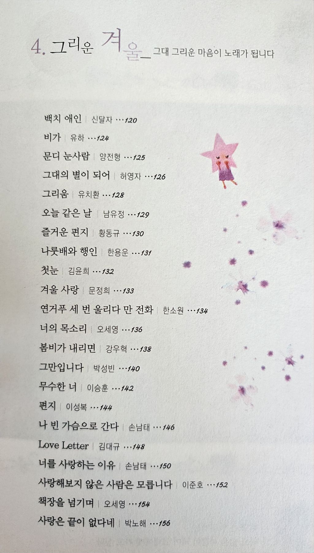 '사랑하니까, 괜찮아' 시집은 봄, 여름, 가을, 겨울로 구성되어 있습니다.