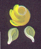 나머지 반쪽도 같은 방법으로 해주면 장미꽃 완성. 이때 밤색 스트록이 노란색 스트록한 꽃잎과 만나도록 해주세요. |