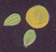 꽃의 틀이될 원형을 황토색으로 동그랗게 칠해주시고 나뭇잎도 환붓1호를 이용하여 칠해주세요 |