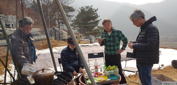 고기 굽고 막걸리 마시며 호시절 직장 동료 이야기로 작업 종료.