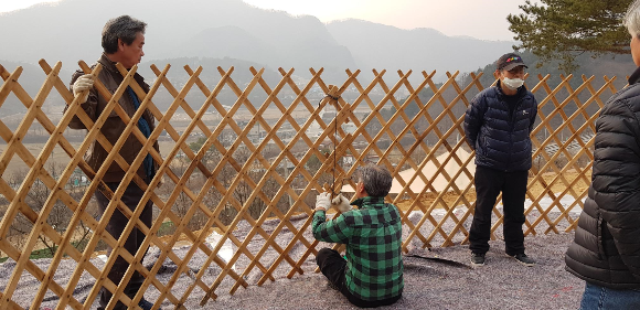 게르 첫 번 째 공정은 카나 (나무벽) 세우기.