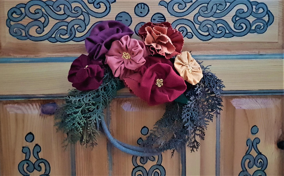 나무벽을 둘러쌀 양모펠트(에스기) 3장을 두르는데, 문 양쪽에서 덮기 시작 가운데 부분 겹치게 한다.