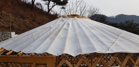 지붕을 덮는 펠트는 2장으로 되어 있다. 반원형으로 만든 펠트는 빛을 차단 하는 쪽으로 덮고,